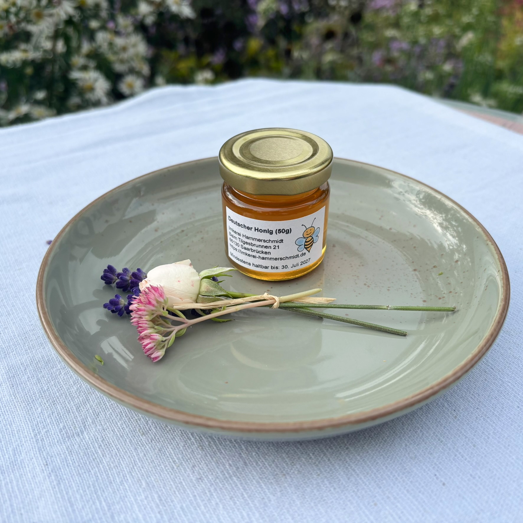 - 50 g Glas mit regionalem Honig aus Saarbrücken aus eigener Imkerei